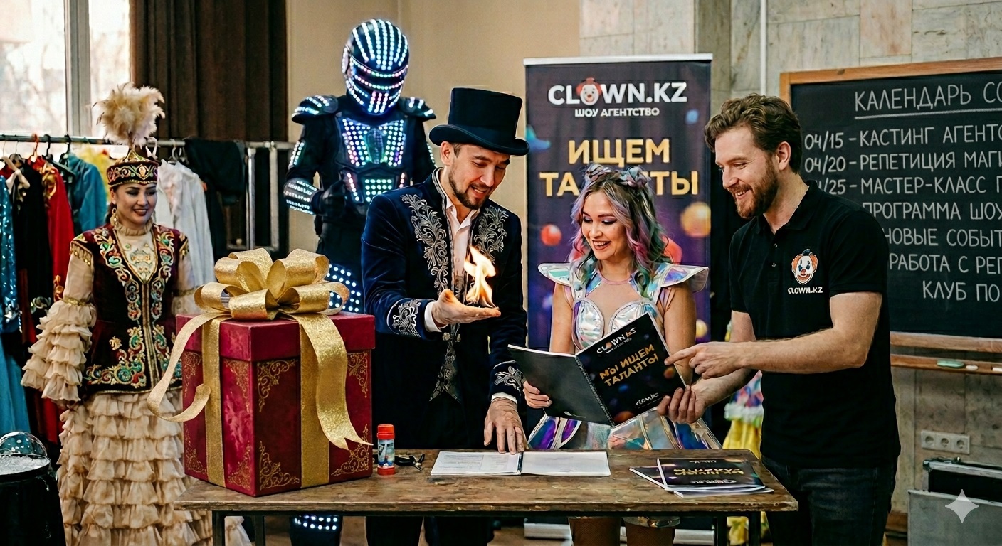 Мы в «Клоун.kz» постоянно обновляем базу артистов и ищем новые, захватывающие форматы.