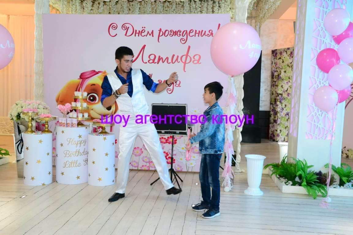 • В шоу программе- фокусы с живым, кроликом, морской свинкой голубем, горящей чашей, волшебными монетами, летающий столом и многое другое прекрасно дополнит ваше праздничное событие в Алматы и Алмаатинской области.