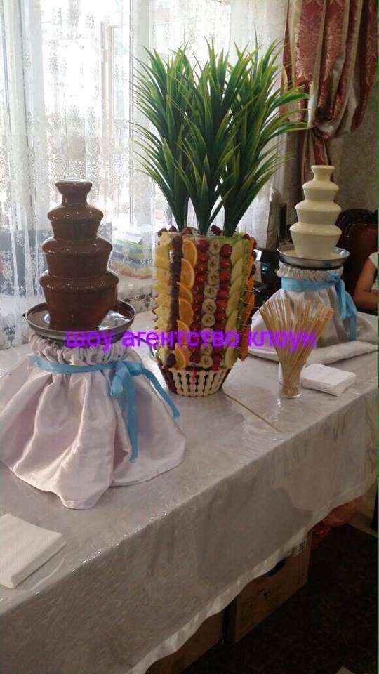 В стоимость входит аренда фонтана 4кг шоколада, шпажки, салфетки, доставка и установка.