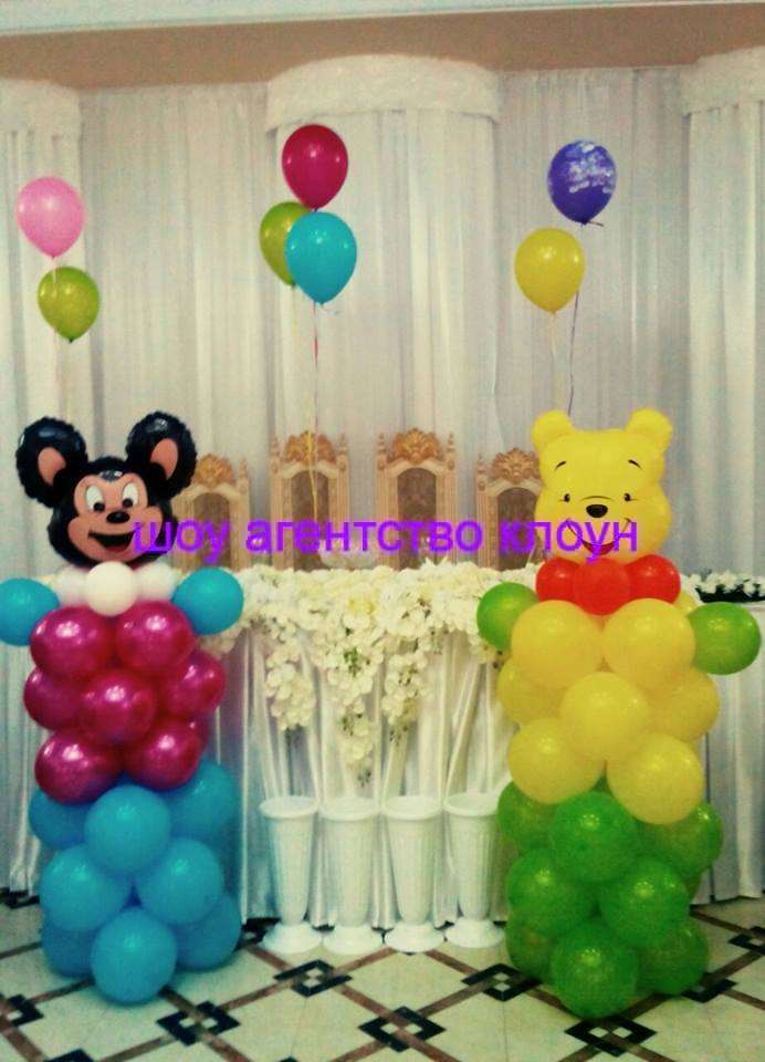 Фигуры из шаров в виде клоуна, гусеницы, пчёлки, Мики-мауса и др. от 3000 тенге.